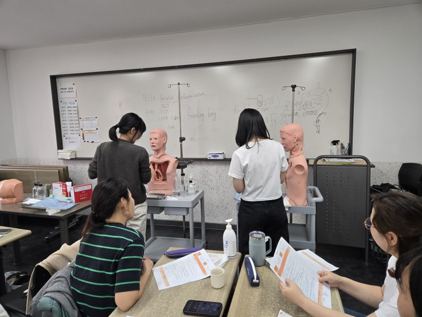 기본간호 실습에 열심인 미래인들~~