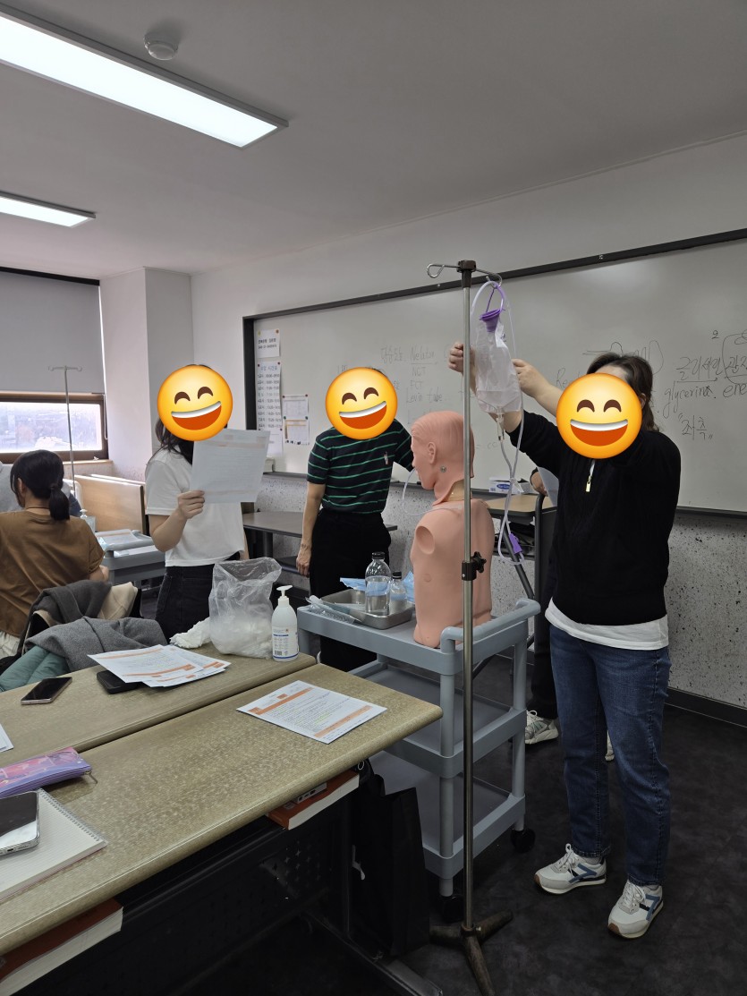 기본간호 실습에 열심인 미래인들~~